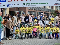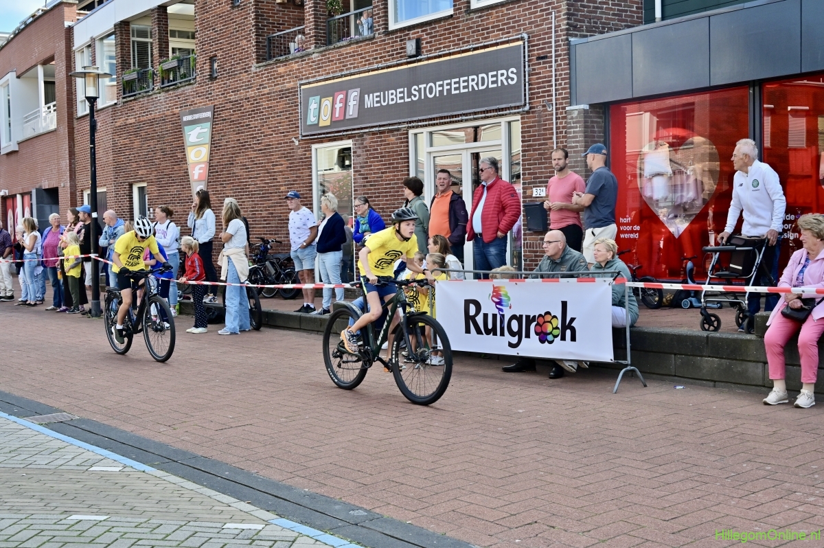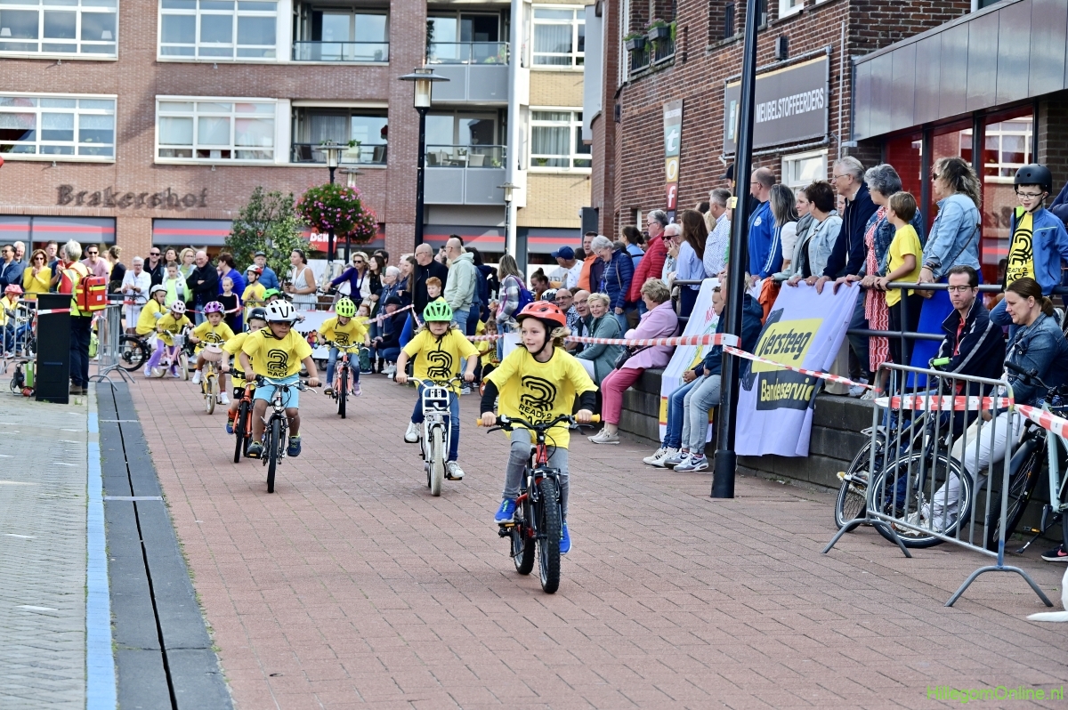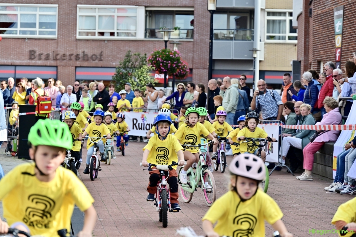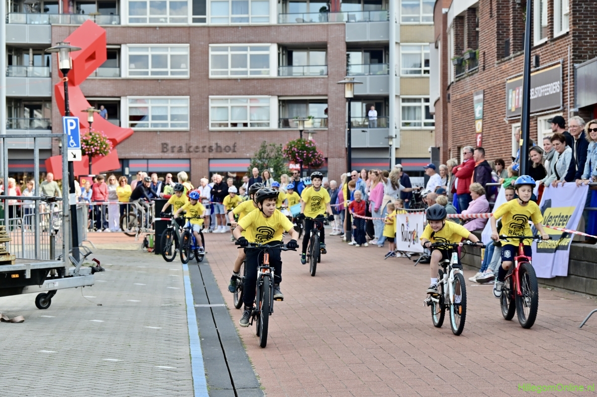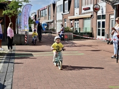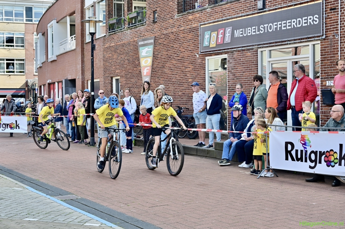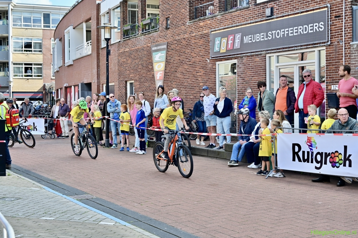 Hillegom – Op het Henry Dunantplein waren verschillende wielerrondes uitgezet. In het midden die voor de hummeltjes op hun loopfietsen. En een grotere ronde voor de dikke bandenrace die in verschillende categorieën gereden werd. Elke leeftijdscategorie kreeg er een rondje bij.
