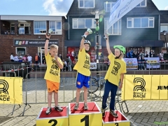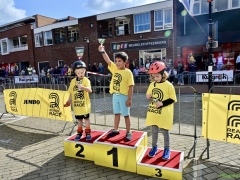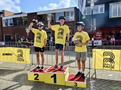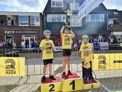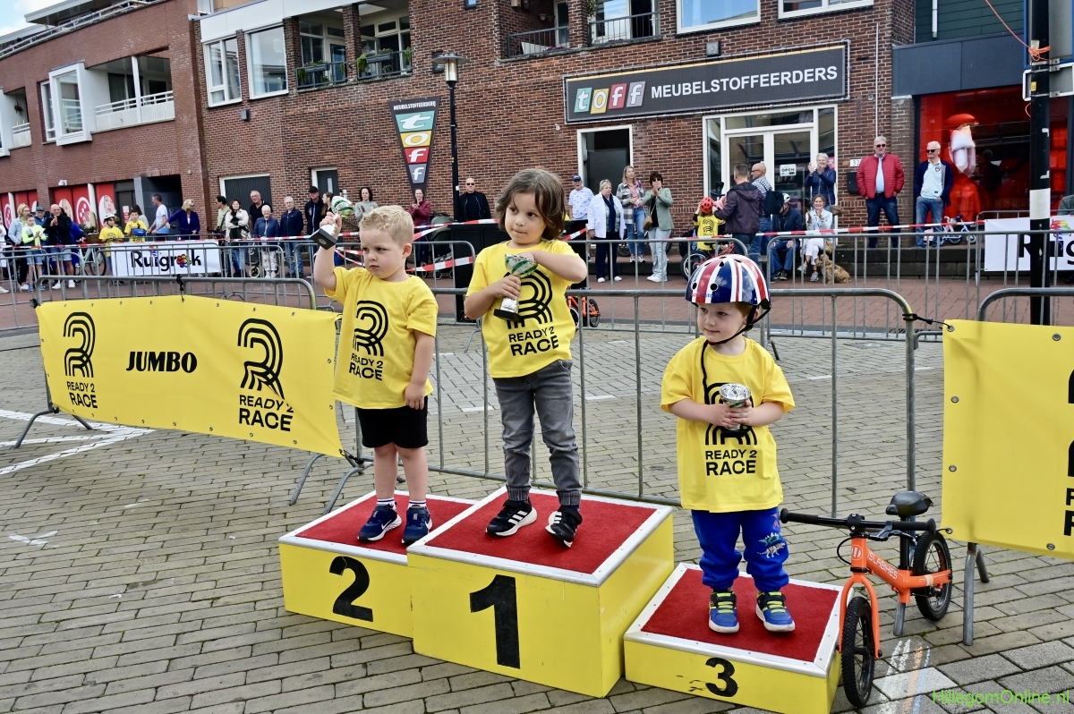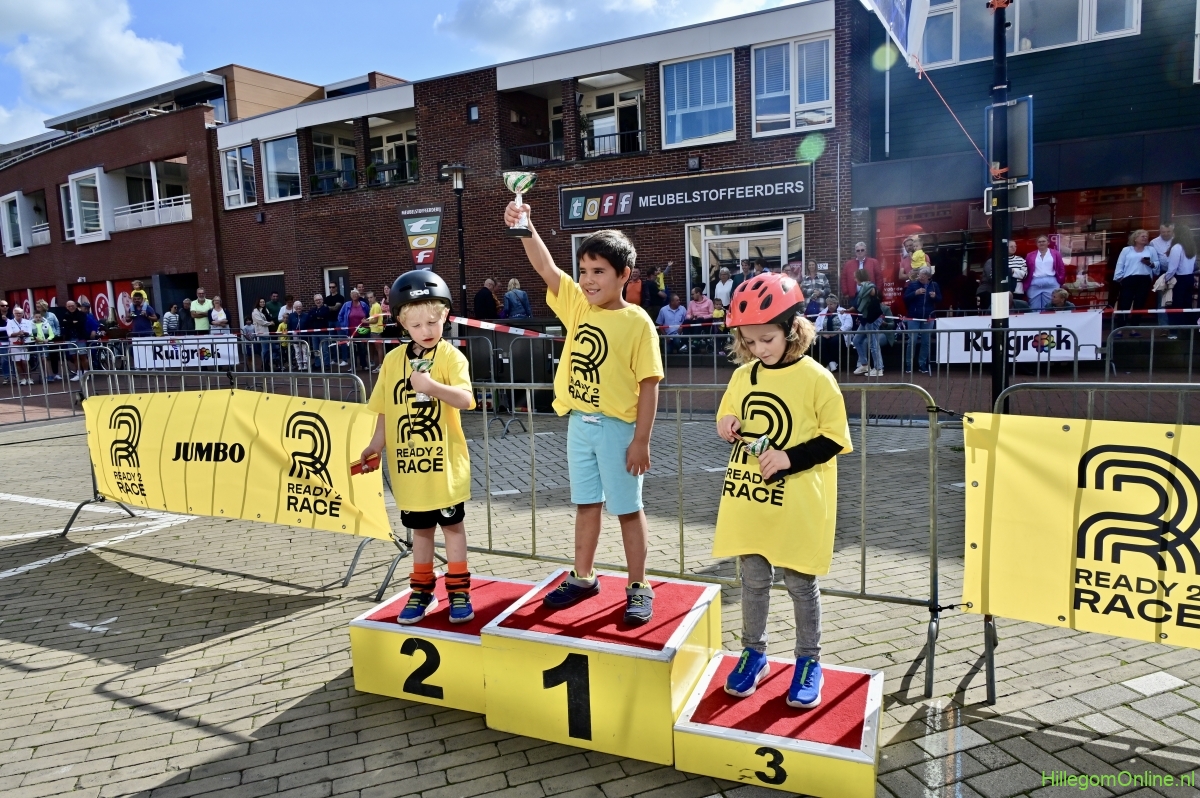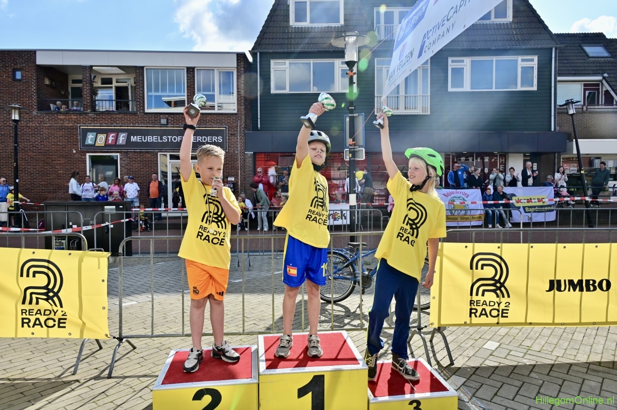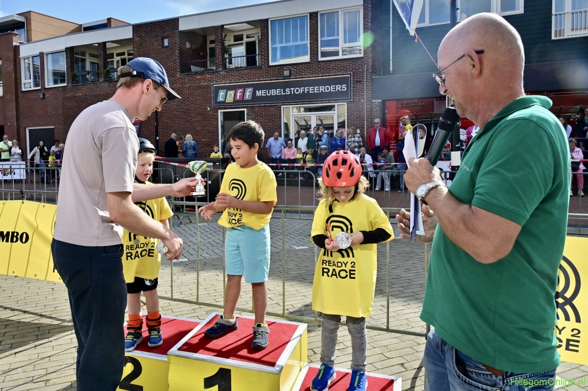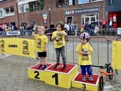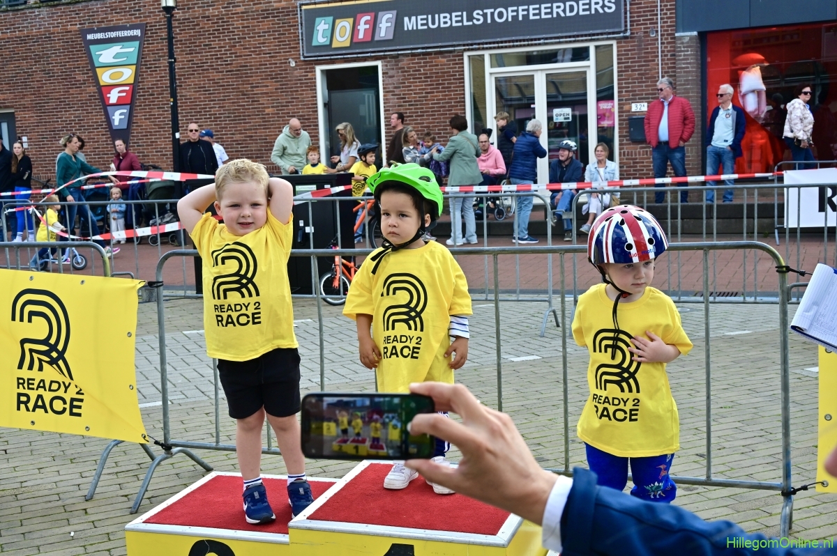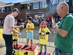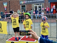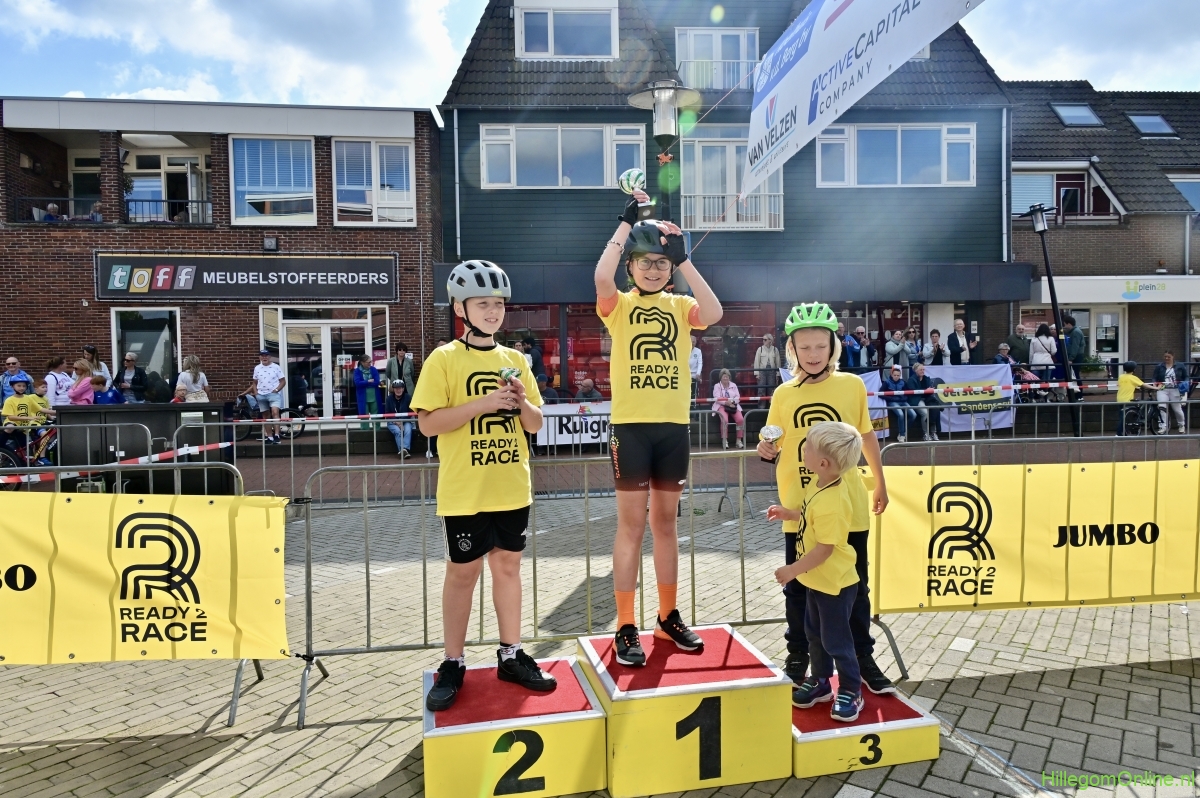 Hillegom – Op het Henry Dunantplein waren verschillende wielerrondes uitgezet. In het midden die voor de hummeltjes op hun loopfietsen. En een grotere ronde voor de dikke bandenrace die in verschillende categorieën gereden werd. Elke leeftijdscategorie kreeg er een rondje bij.