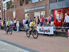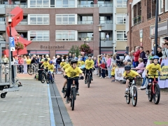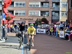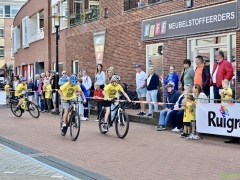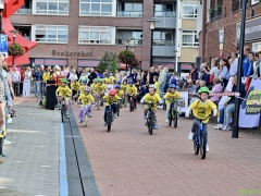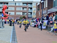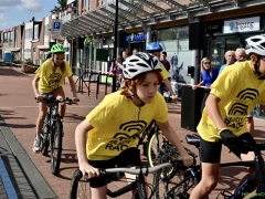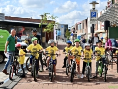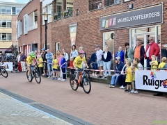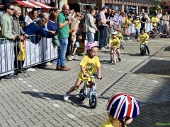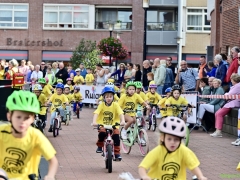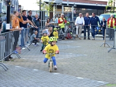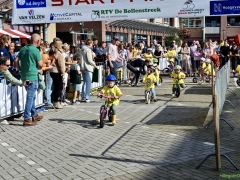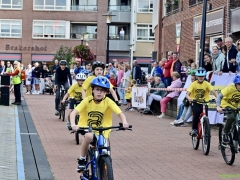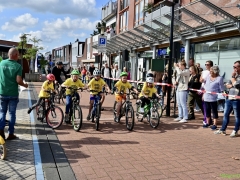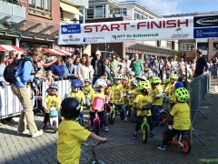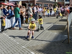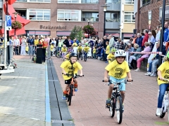Wat werd er gefietst! Door de grotere kinderen, maar zeker ook door de kleinsten. Het was leuk om te zien. Er was dan ook een heleboel publiek langs de kant.