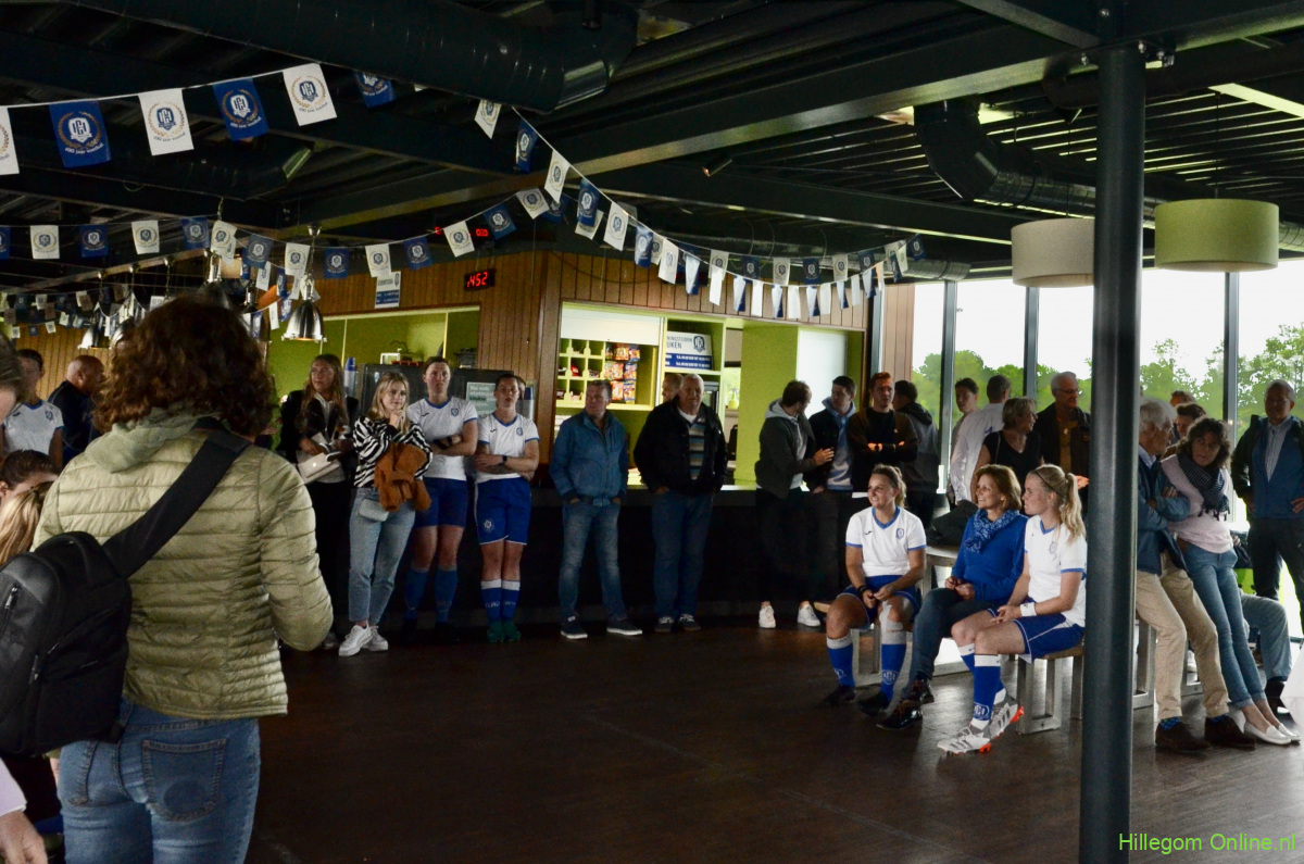 De burgemeester nam het woord en sprak Christine Mens lang toe; hij beschreef hoe zij aan de bron van het vrouwenvoetbal in Hillegom heeft gestaan, toen dat er nog helemaal niet was en hoe zij dit heeft uitgebouwd tot het niveau waarop het nu staat. Dit verdient een onderscheiding, zeker nu zij met deze vrijwillige werkzaamheden gaat stoppen.