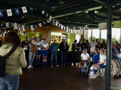 Toen het laatste fluitsignaal geklonken had, werd zij door haar team meegenomen naar de kantine. Hier werd zij zichtbaar verrast door de hoeveelheid bekende mensen die daar voor haar bijeen gekomen waren. Het bleek dat zij de enige was die niet op de hoogte was van wat er ging gebeuren.