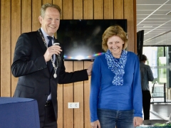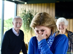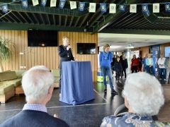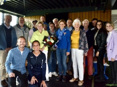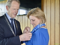 De verrassing was echter compleet toen de burgemeester uitsprak dat het “Zijne Koninklijke Hoogheid” had behaagd haar een koninklijke onderscheiding uit te reiken voor de langdurigheid van haar grote inzet. De versierselen werden opgespeld, er waren bloemen en toen was het tijd voor het team en de familie om letterlijk om Christine Mens heen te gaan staan.