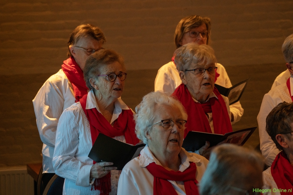 Hillegom – Het Hillegomse seniorenkoor Eigenwijs gaf zondagmiddag een kerstoptreden. In het gebouw De Bestemming klonken kerstliederen. Ied van Lierop stond weer voor het koor en betrok ook het publiek bij het optreden. Zo mocht er bij sommige liedjes meegezongen worden of mocht het publiek een bepaald stuk zingen. Het was een gezellig middag met op het einde nog een hapje en een drankje.