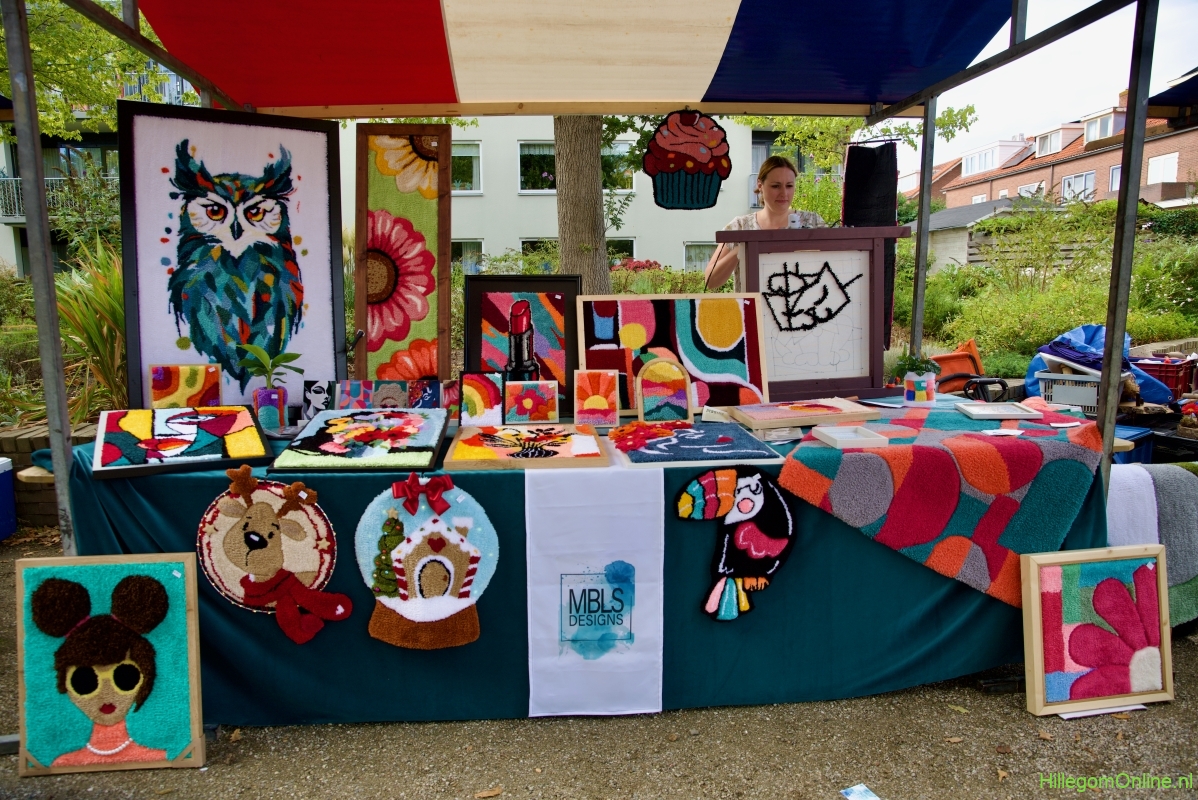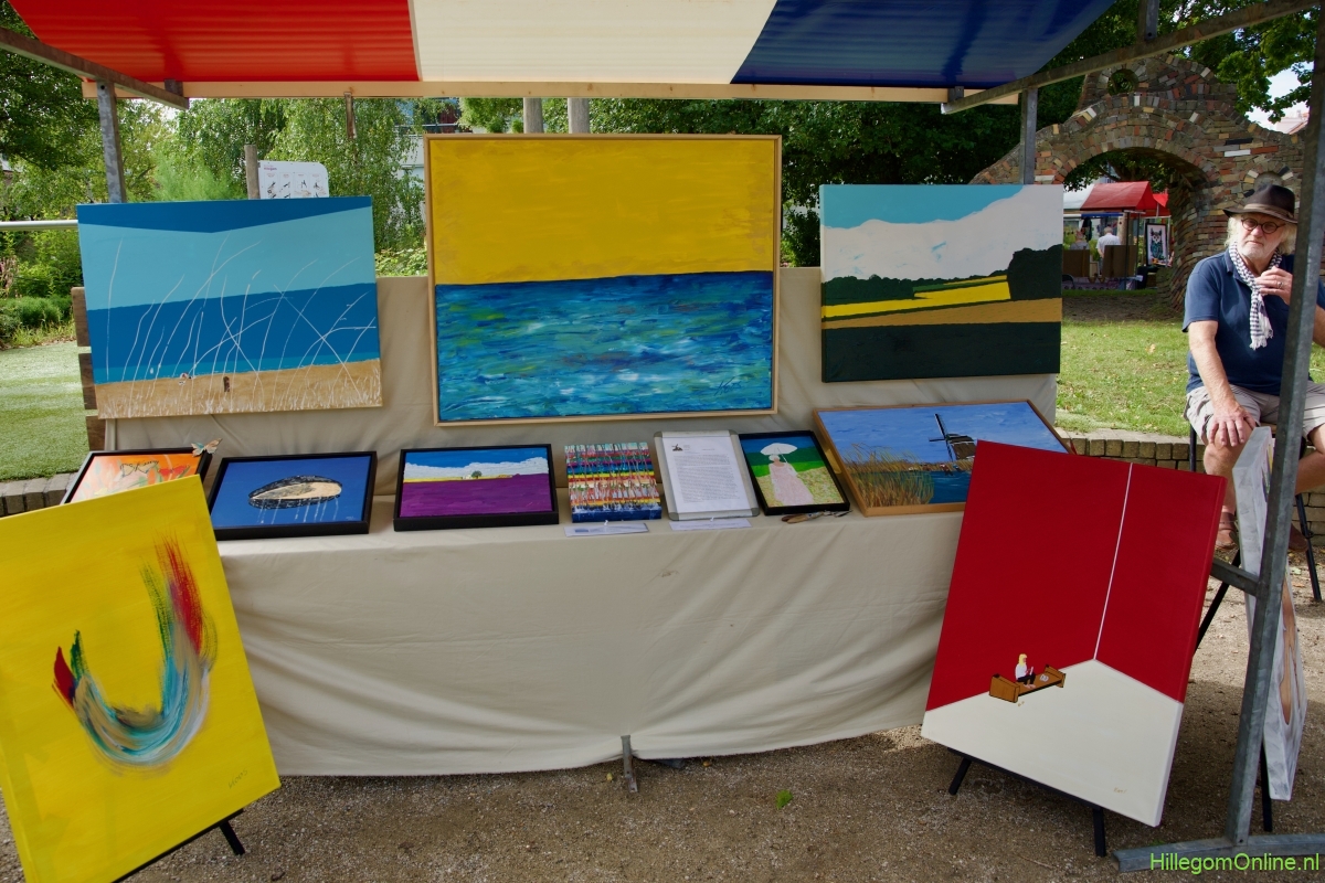Op zondag 31 augustus werd het Julianapark in Hillegom weer omgetoverd tot een creatieve ontmoetingsplek tijdens de kunstmarkt. In zo’n dertig kraampjes lieten 33 kunstenaars hun werk zien en konden bezoekers kennismaken met uiteenlopende kunstvormen. Naast het bewonderen en kopen van kunst was er ook ruimte om zelf aan de slag te gaan en gingen de opbrengsten van enkele kramen naar het goede doel.