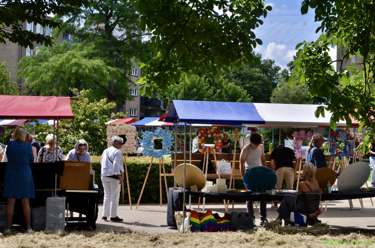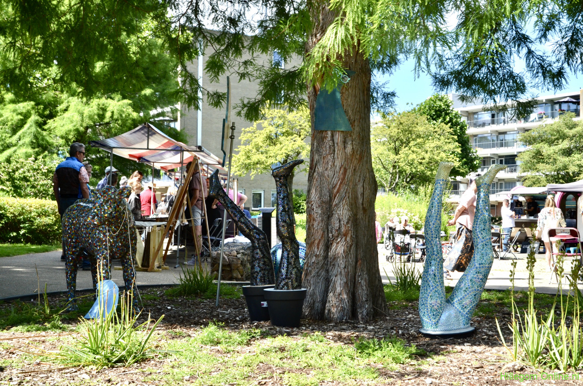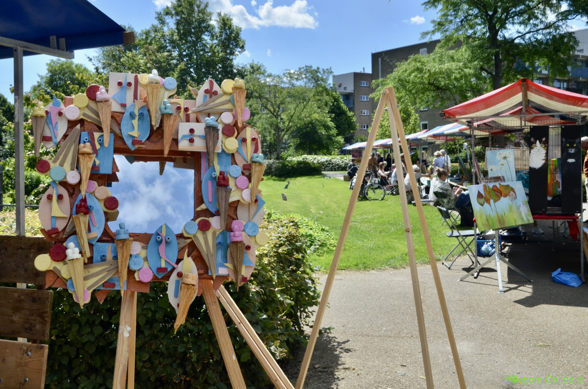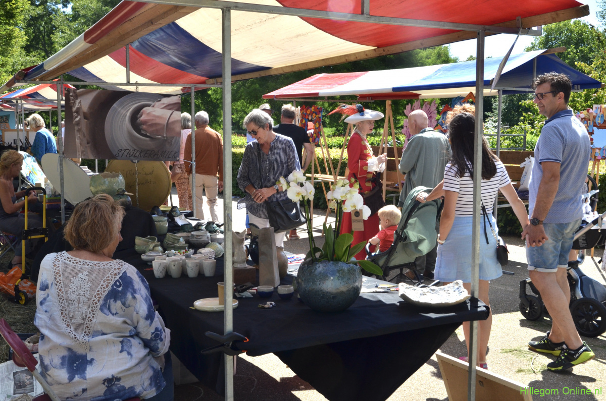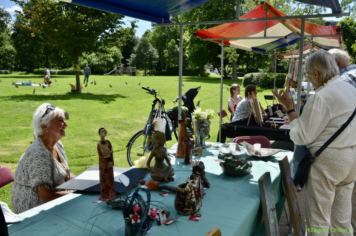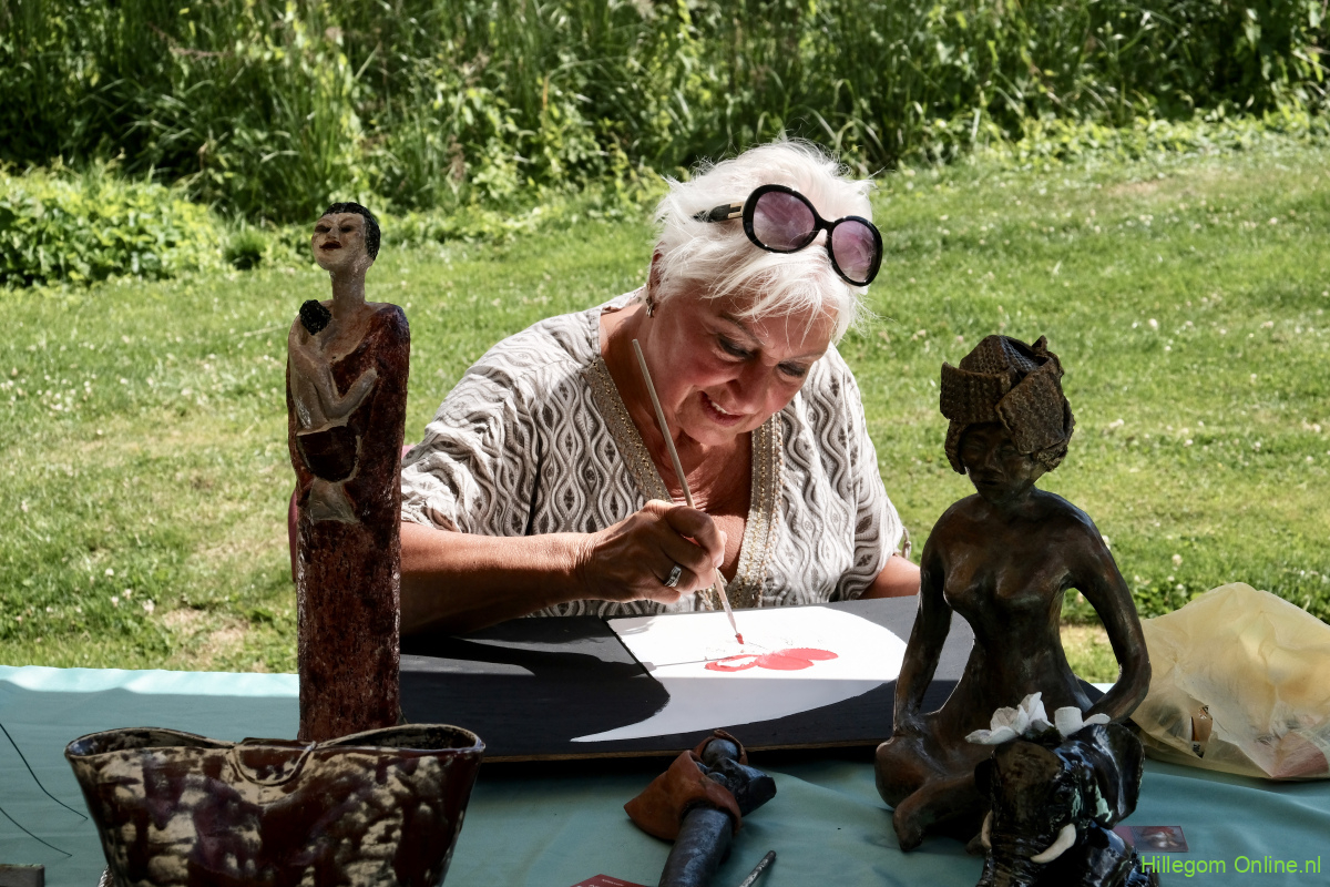 Hillegom – Op zaterdag 2 juli was het Elsbroekpark weer omgetoverd tot Kunstpark. Ongeveer 40 kunstenaars stonden klaar om uitleg te geven over hun werk. Van schilderijen tot geverfde stenen, van keramiek tot vilt, van glas tot digitale kunst.