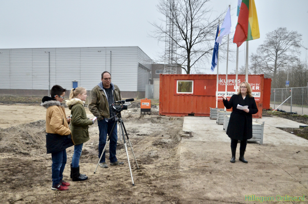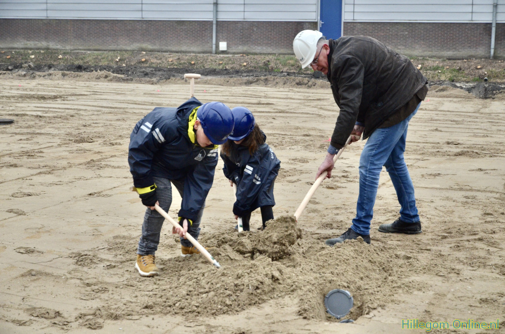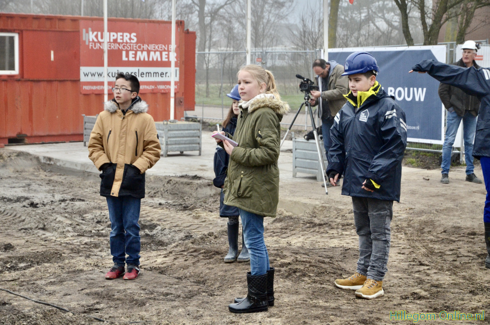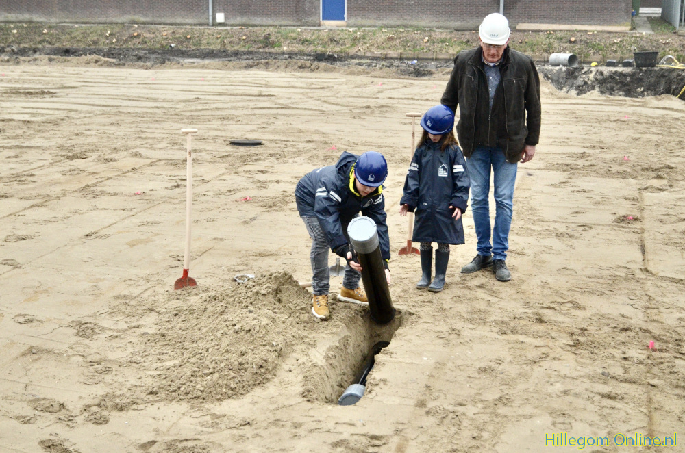 Tijdscapsule door kinderen op bouwplaats IKC Hillegom ingegraven