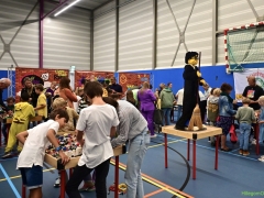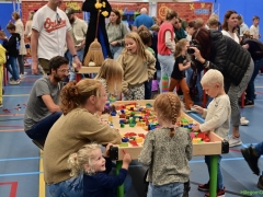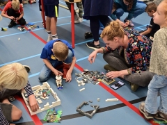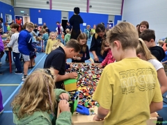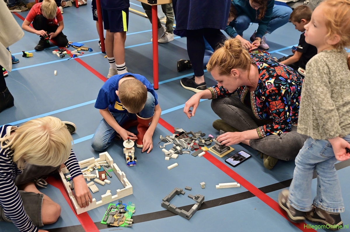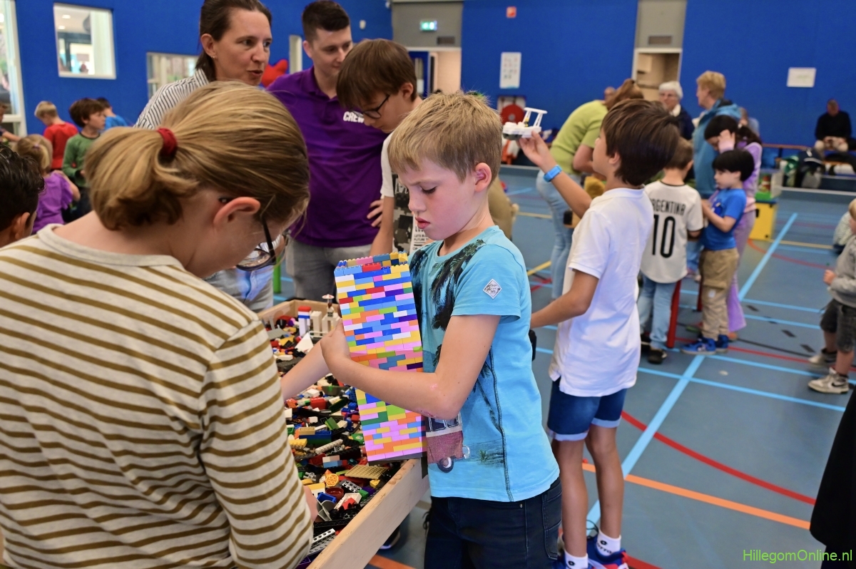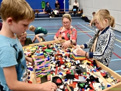 Stel je een sporthal voor met talloze bakken vol lego. Heel veel lego. Daar om heen veel kinderen, maar zeker niet alleen kinderen. Dat was woensdagmiddag het decor voor de legobouwwedstrijd. Er werd hard gewerkt en onder al die drukke handen ontstonden de meest kunstzinnige bouwwerken, ieder met zijn eigen stijl.