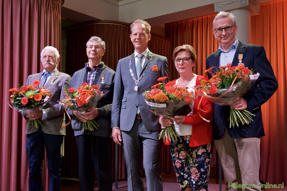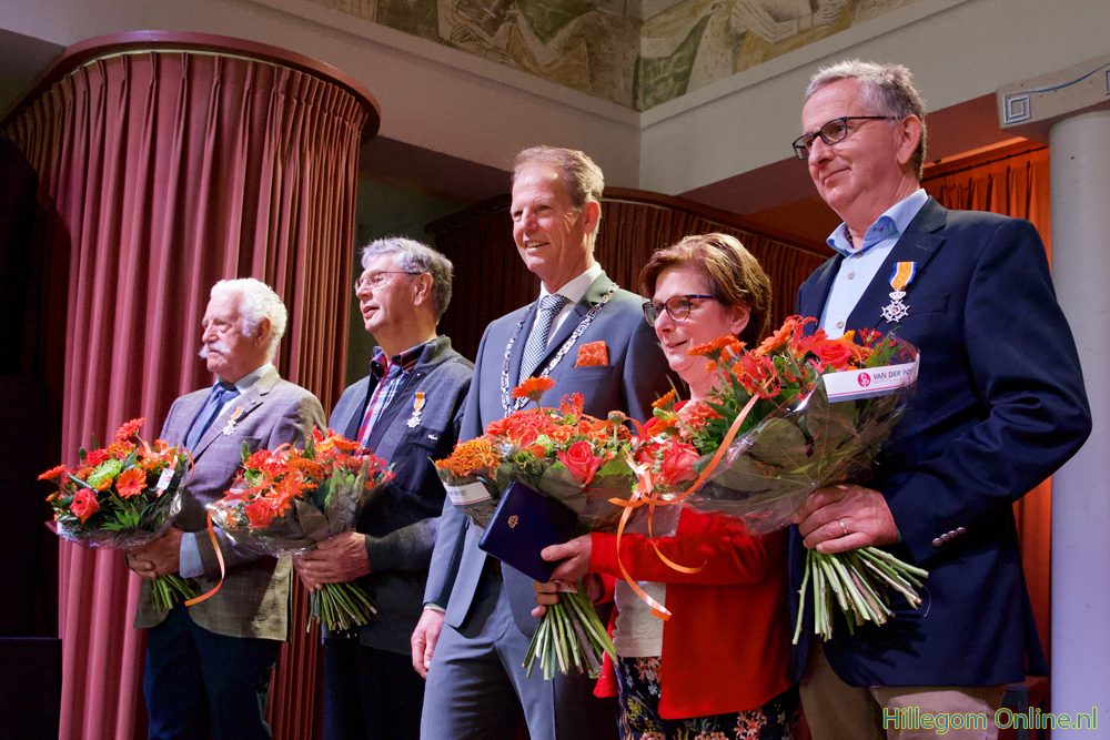 Hillegom – Vrijdag 26 april kregen vier inwoners van Hillegom een koninklijke onderscheiding uitgereikt door burgemeester Arie van Erk. Tijdens de jaarlijkse lintjesregen ter ere van Koningsdag werden drie van hen benoemd tot Lid in de Orde van Oranje-Nassau. Eén persoon werd benoemd tot Ridder in de Orde van Oranje-Nassau.