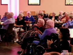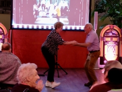 Hillegom – In Bloemswaard werd woensdagmiddag een muziekprogramma gepresenteerd. Het waren korte stukjes muziek en beeld van bekende artiesten uit binnen- en buitenland. Er was veel herkenning bij de bewoners en er werd vrolijk meegezongen en gedanst. Hillegom Online fotograaf Bert bracht een bezoek aan Bloemswaard.