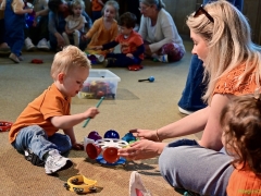 De muziekworkshop voor peuters was een geweldige ervaring voor de jongste deelnemers! Kinderen van 1,5 t/m 3 jaar ontdekten de wereld van geluid en ritme op een speelse manier. Met vrolijke melodieën, instrumenten en veel interactie gingen de peuters helemaal op in de muziek. Het was een perfecte gelegenheid voor de kinderen om hun muzikale talenten te ontdekken en plezier te hebben in een gezellige, creatieve omgeving.