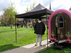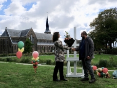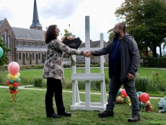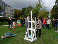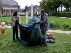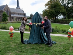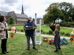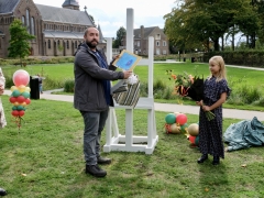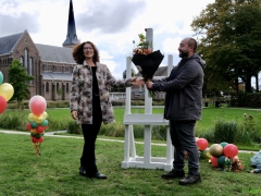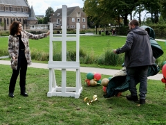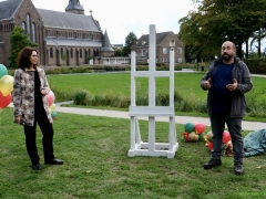 Hillegom – Vanmiddag onthulde wethouder Karin Hoekstra samen met de kunstenaar David Moinot een nieuw kunstwerk. Het is een grote schildersezel bedacht en gemaakt door David Moinot. Het kunstwerk is ontwikkeld op initiatief van de Kunstcommissie Hillegom.