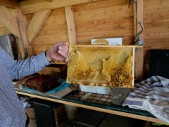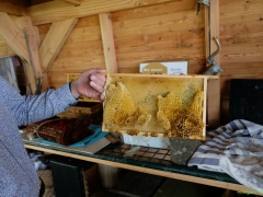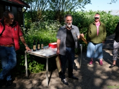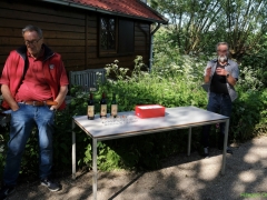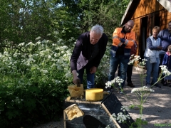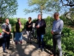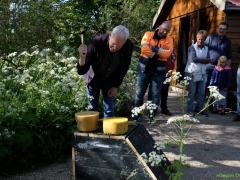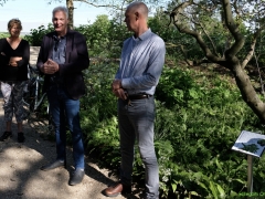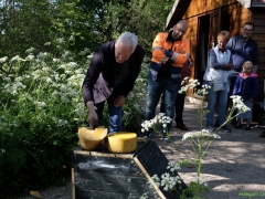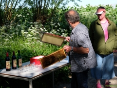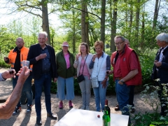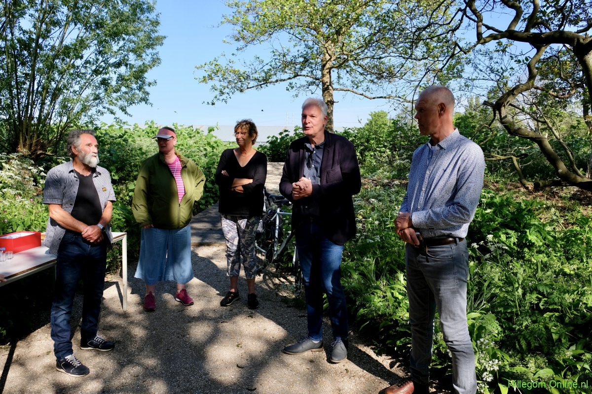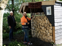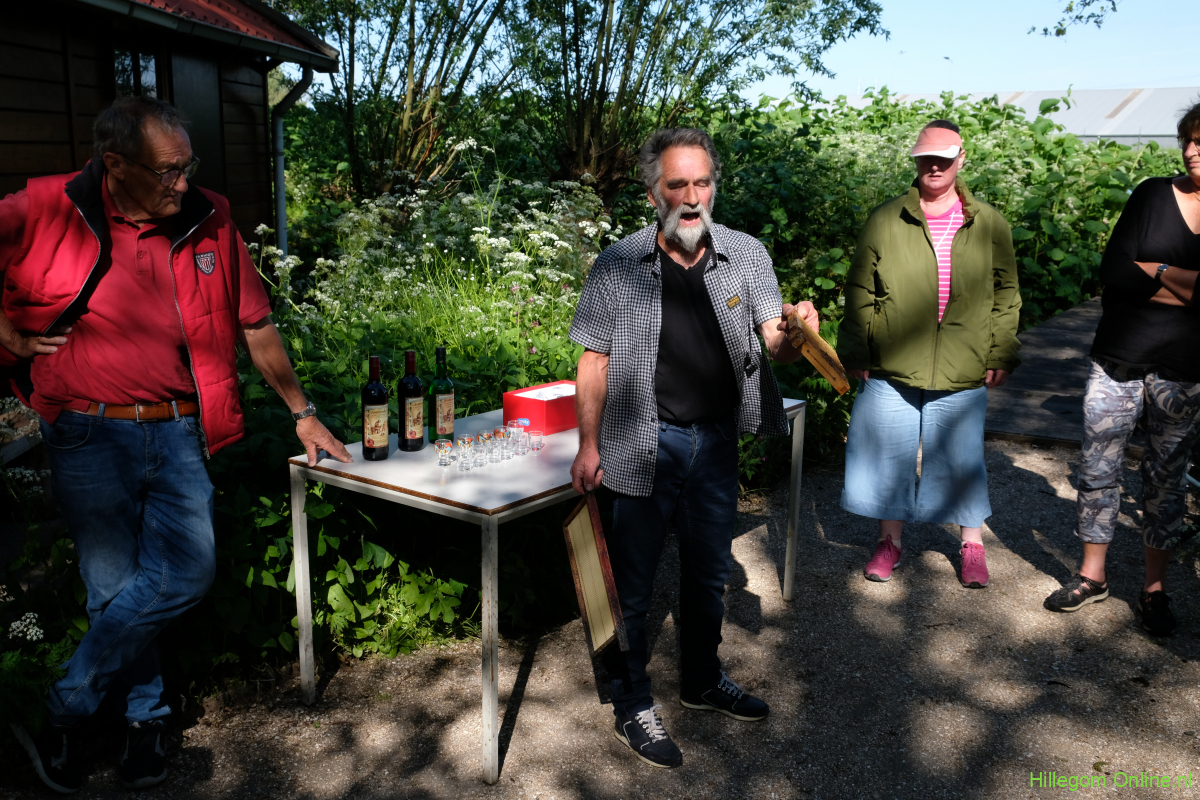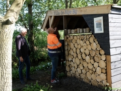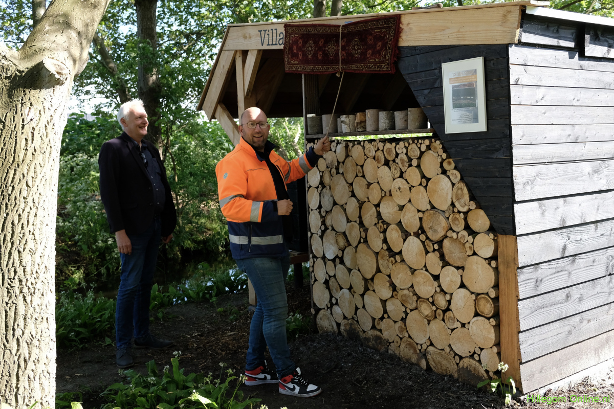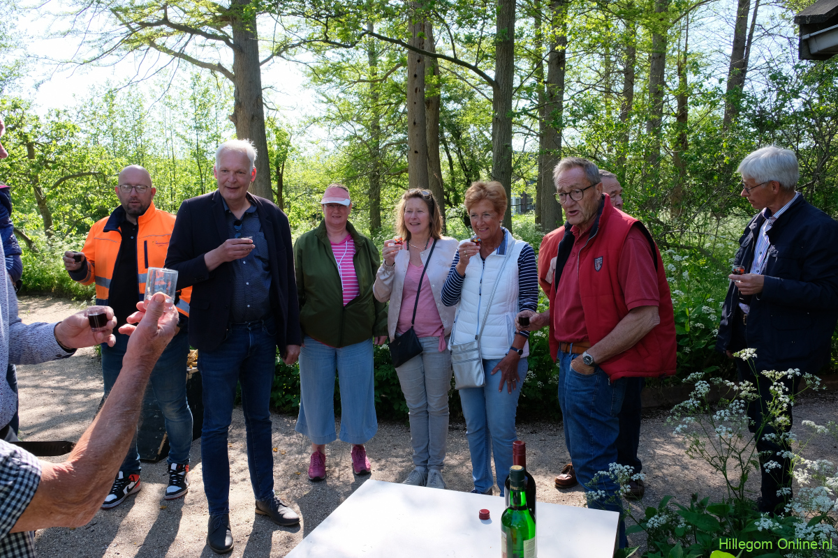 Hillegom – Op donderdag 12 mei was de officiële opening van de nieuwe bijenstal Villa de Blije Bij in de Heemtuin van Hillegom door wethouder Maarten Dijkshoorn en Dave Spithoven van Meerlanden. De bouw is tot stand gekomen door de vrijwilligers en de imkers Joop van der Aar en Peter Verbruggen en door sponsoring van: Meerlandenfonds, fonds 1818, gemeente Hillegom, SOZW Hillegom, sierbestrating Oosteinde en RET bv. De opening vond plaats door het in stukken hakken van blokken bijenwas en het onthullen van het naambord. Na afloop konden de aanwezigen genieten van Ambrosius een honingwijn. De lokaal geproduceerde honing wordt ter plaatse verkocht door de imkers en de opbrengsten komen ten goede aan de bijenstal.