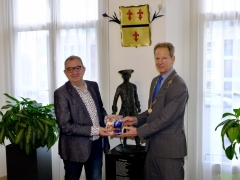 Hillegom – Woensdag 3 april werd het eerste programmaboekje voor de festiviteiten rondom Koningsdag 2024 overhandigd door Herman de Joode, secretaris van het Oranjecomité, aan burgemeester Arie van Erk. Er zullen de komende week 9500 boekjes verspreid worden in Hillegom.