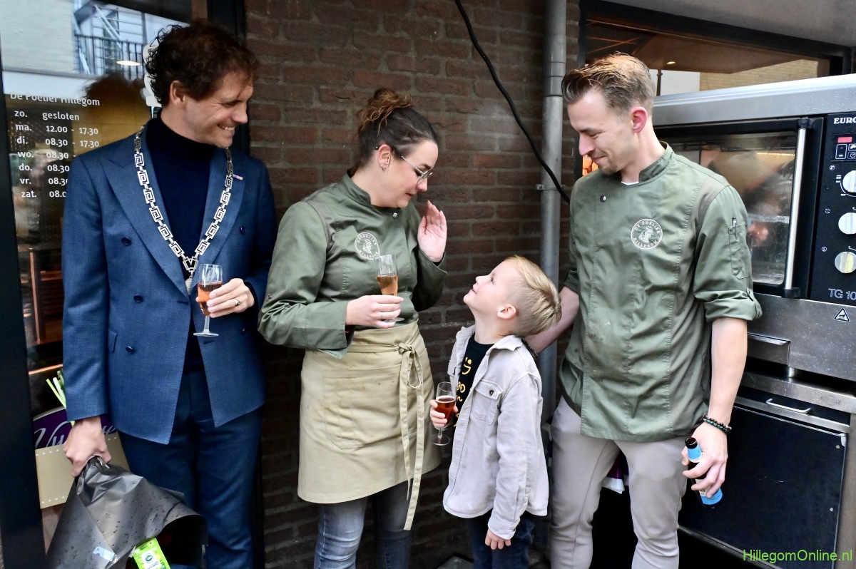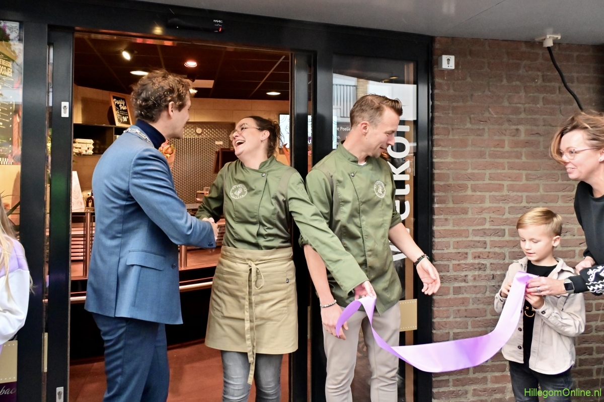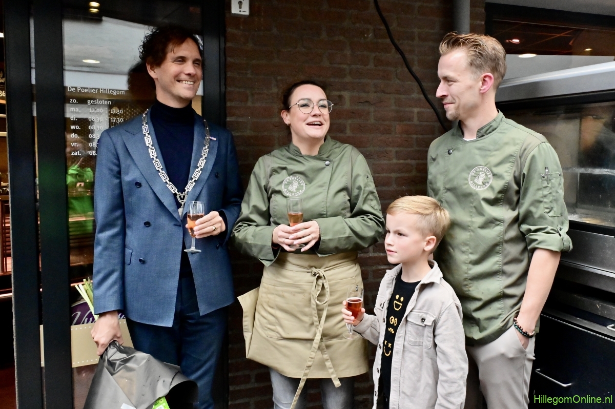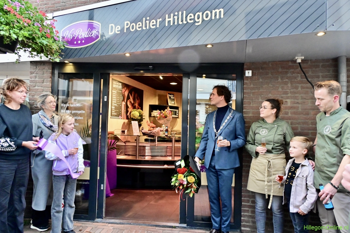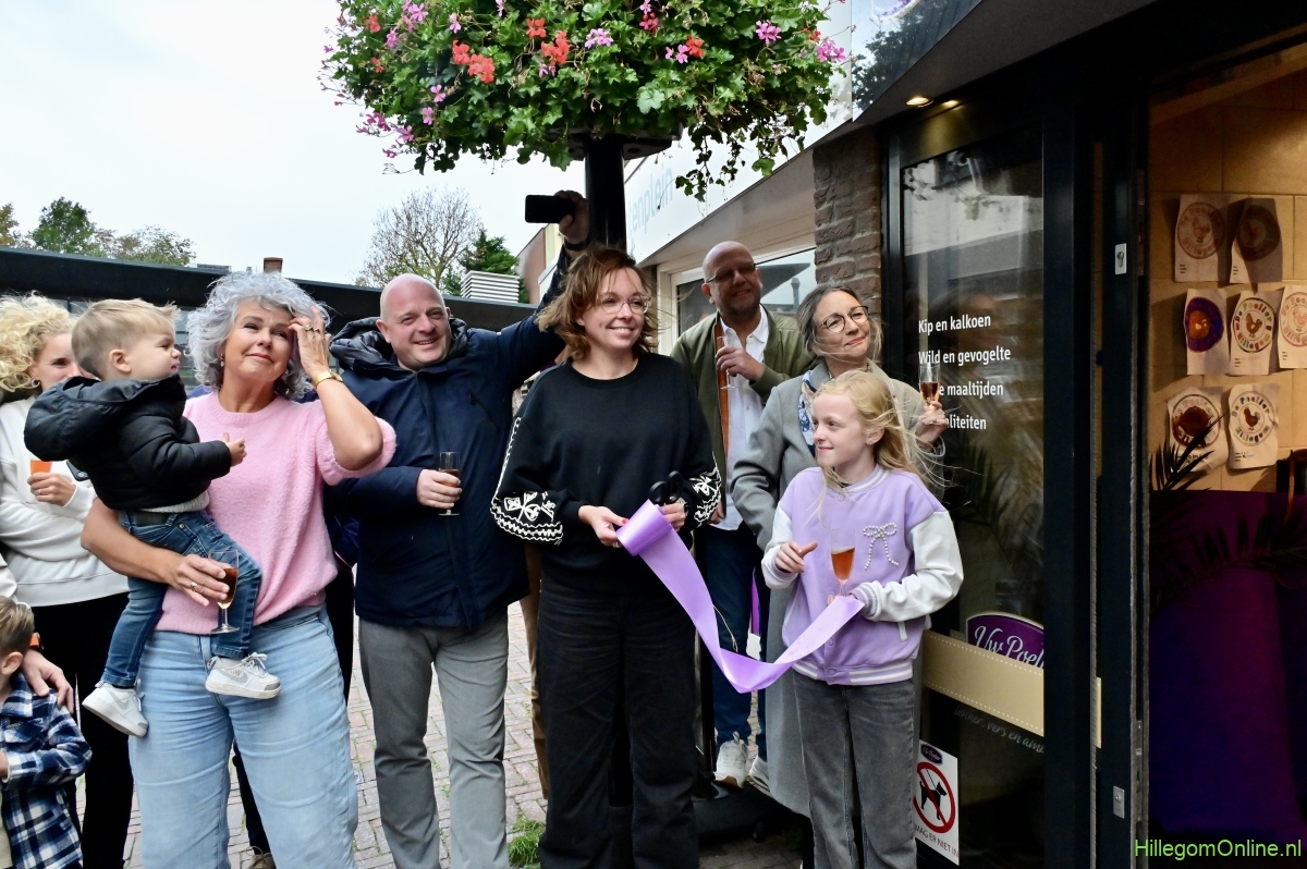 Eind augustus droegen Paul en Hilly de winkel al over aan dochter Mylene en schoonzoon Jeffrey maar afgelopen zaterdag, 4 oktober, was de officiële heropening van de Hillegomse poelier. Het personeel was in nieuwe werkkleding gestoken. Helaas geen ballonnenboog en paarse loper vanwege de wind. Burgemeester Roberto ter Hark was er wel. Na mooie woorden van Mylene en de burgemeester werd een paars lint doorgeknipt, waarmee de heropening een feit was.