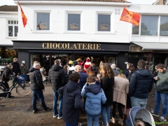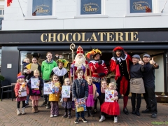 Hillegom – Bij Chocolaterie Pierre was zaterdag de uitreiking van de Pietenselfie-actie en de kleurwedstrijd. Sinterklaas kwam samen met de Hillegomse pietenband aanlopen. Binnen stonden alle prijzen klaar. Na het zingen was het tijd voor de eerste prijzen.