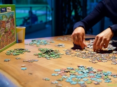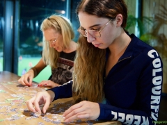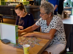 Hillegom – Een puzzel van 1.000 stukjes binnen 2,5 uur leggen, dat was de uitdaging bij de Puzzelwedstrijd. Tijdens ons bezoek waren de puzzelaars in opperste concentratie bezig. En de contouren van de eerste puzzels waren al zichtbaar.