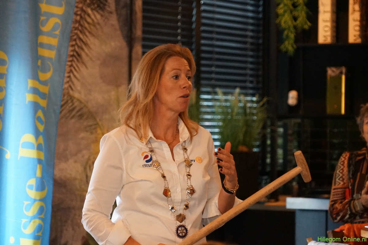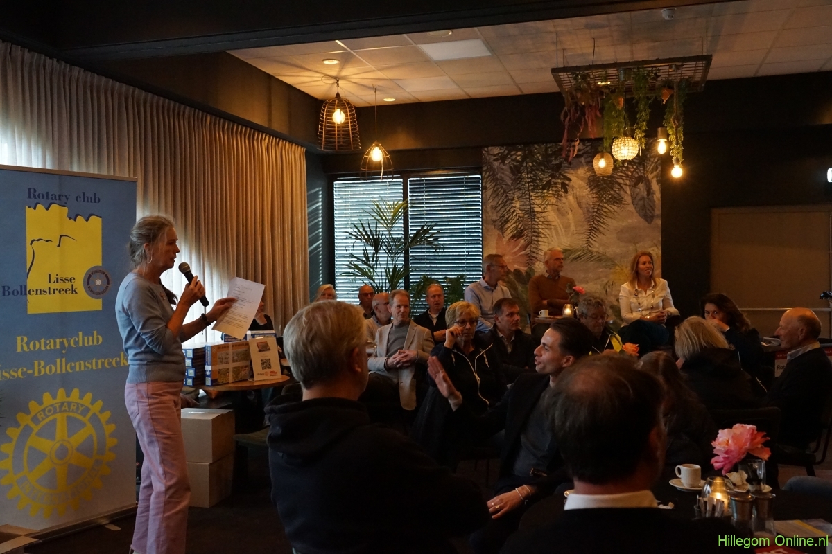 Tijdens de bijeenkomst lichtte voorzitter Trude Hol van Rotaryclub Lisse-Bollenstreek het doel toe: de estafettebakfiets gaat langs alle 500 Rotaryclubs in Nederland voor speciale acties.