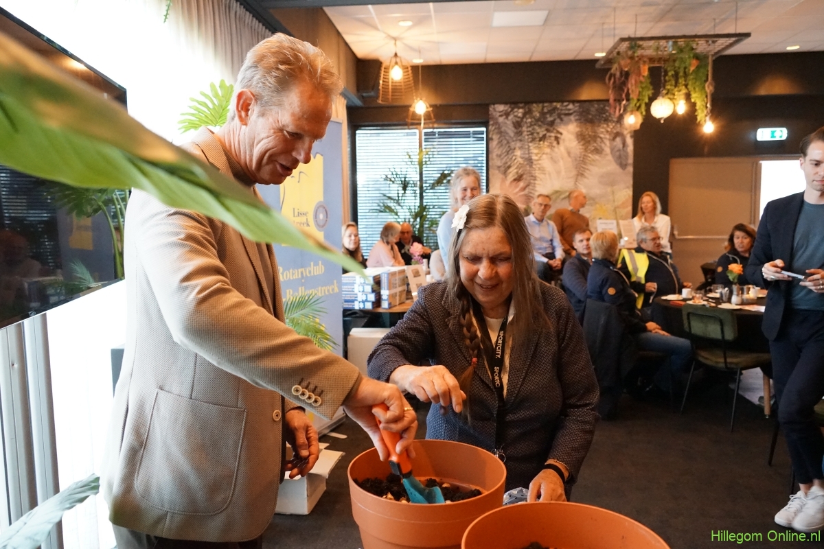 Gouverneur Wendy Boog en Burgemeester Arie van Erk spraken over de waarde van Rotary en het belang van samenwerken in de maatschappij. De middag werd afgesloten met het symbolisch planten van de eerste bollen in diverse potten door burgemeester van Erk met de hulp van één van de bewoners van Parkwijk, mevrouw Verboom die zeer vereerd was dat ze de burgemeester mocht helpen.