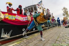 Hillegom – Sinterklaas en de pieten werden weer door duizenden kinderen onthaald in de Hillegomse haven. Langs de hele kade stonden kinderen met hun ouders te zwaaien.
