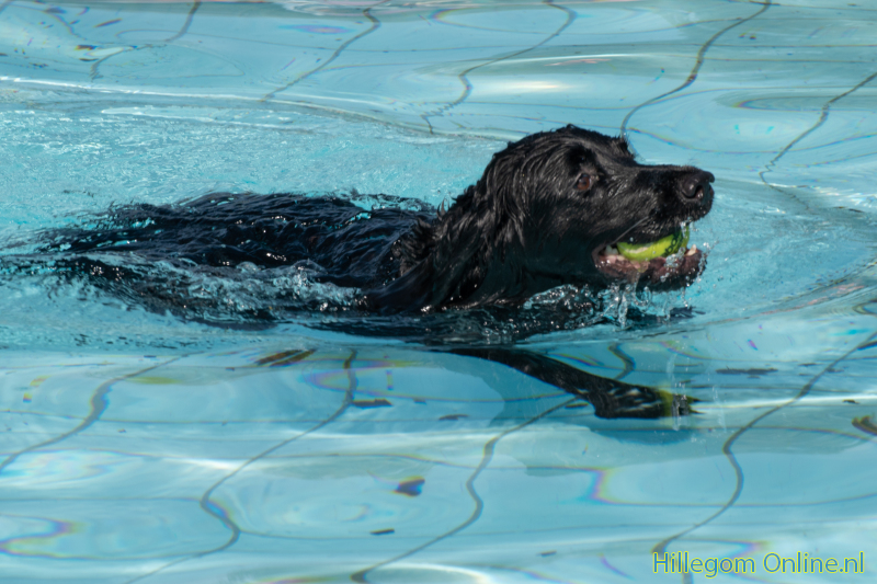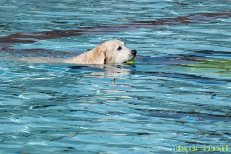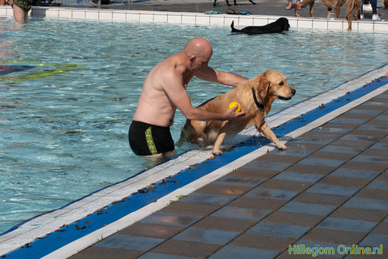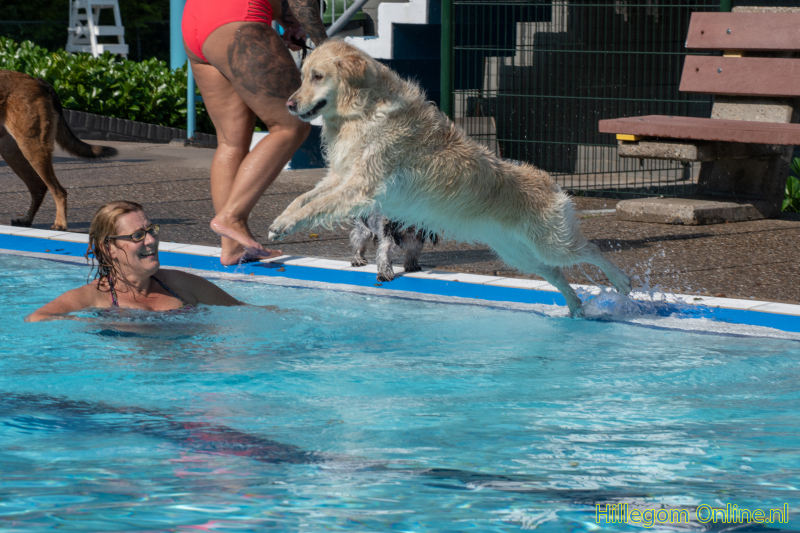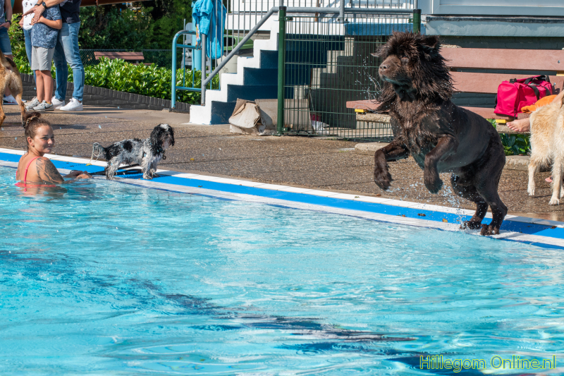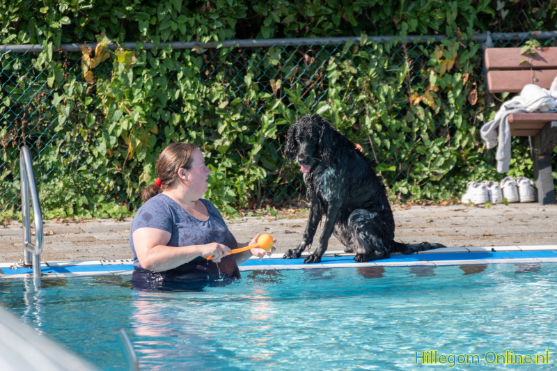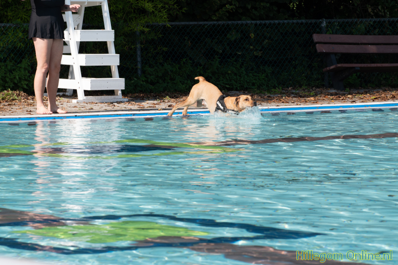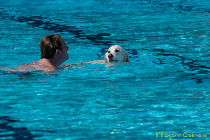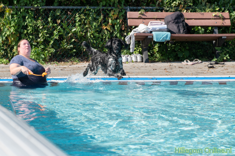 Hillegom – Zondag 13 september was zwembad De Vosse gevuld met viervoeters. Traditiegetrouw mogen de Hillegomse honden één keer per jaar zwemmen in De Vosse ter afsluiting van het zwemseizoen. Veel honden namen samen met hun baasje een duik.