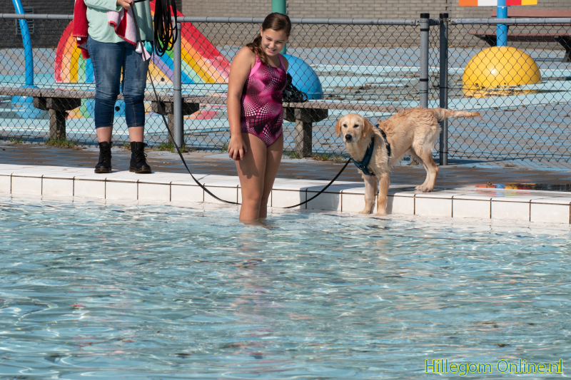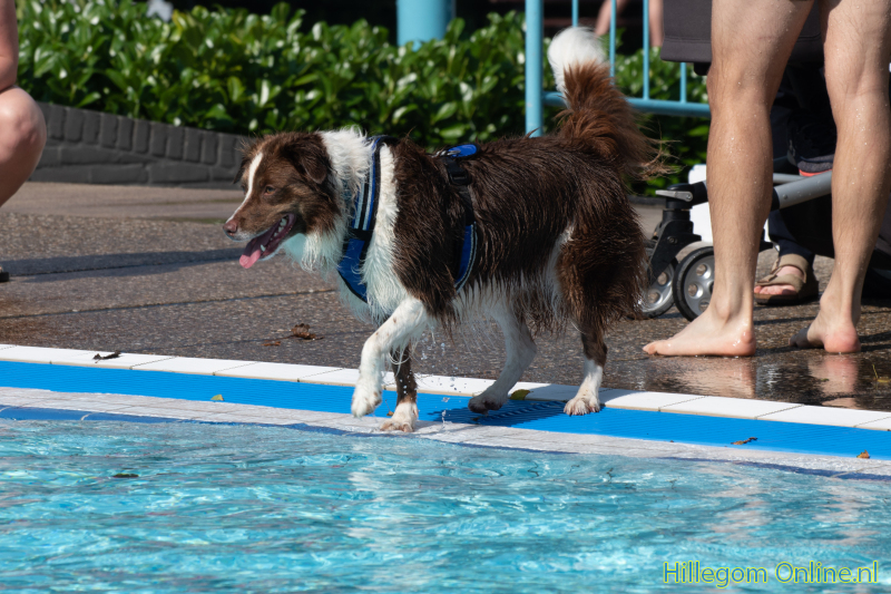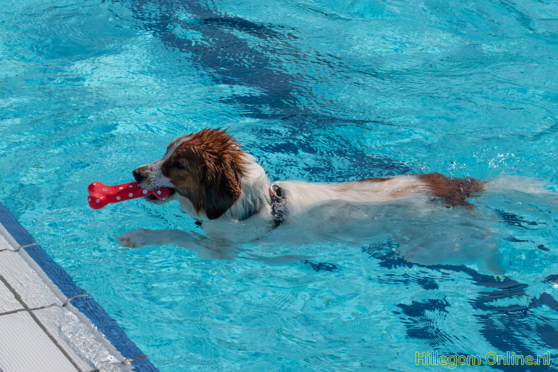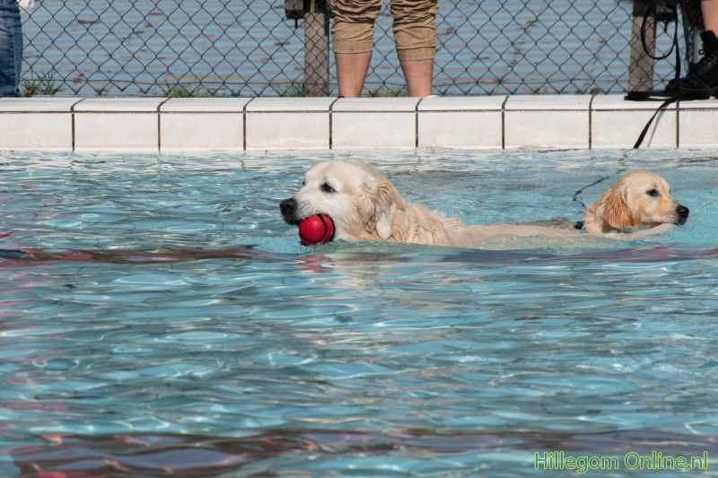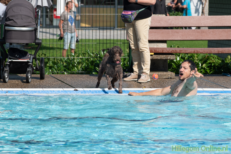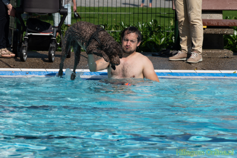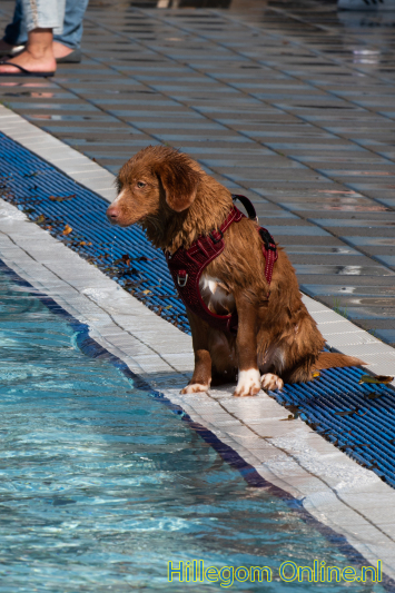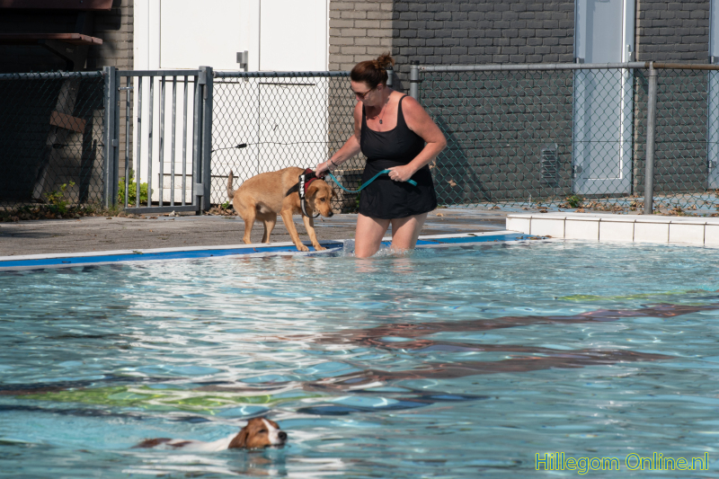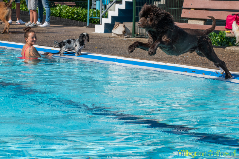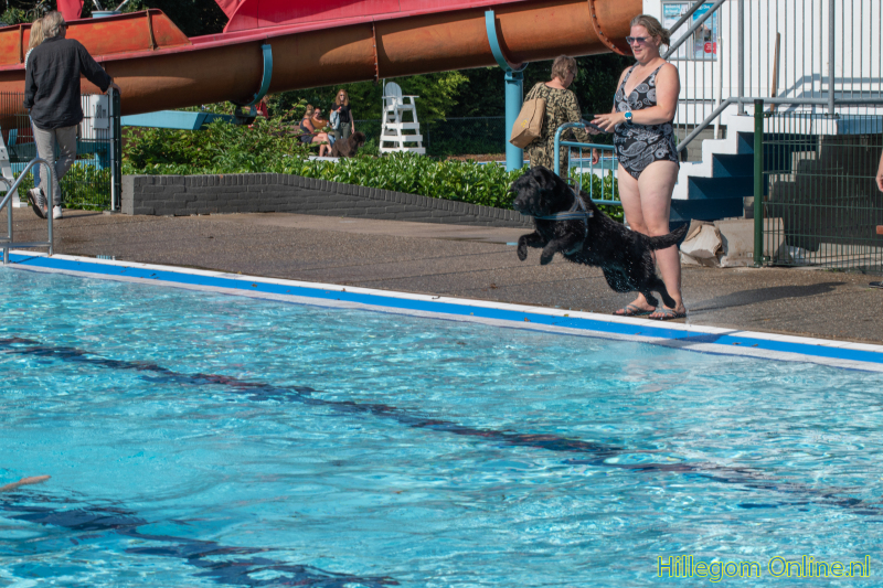 Hillegom – Zondag 13 september was zwembad De Vosse gevuld met viervoeters. Traditiegetrouw mogen de Hillegomse honden één keer per jaar zwemmen in De Vosse ter afsluiting van het zwemseizoen. Veel honden namen samen met hun baasje een duik.