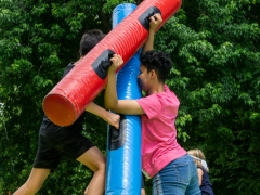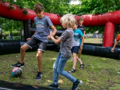 Hillegom – Op zaterdag 2 Juli was in de Hoftuin het Sport en Beweegfestival. Tijdens dit festival, georganiseerd door Hillegom Marketing ism Hillegom in Beweging, konden jong en oud kennismaken met diverse sporten. Onder andere was er suppen, skaten, turnen, seniorenfitness en basketbal.