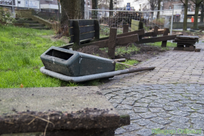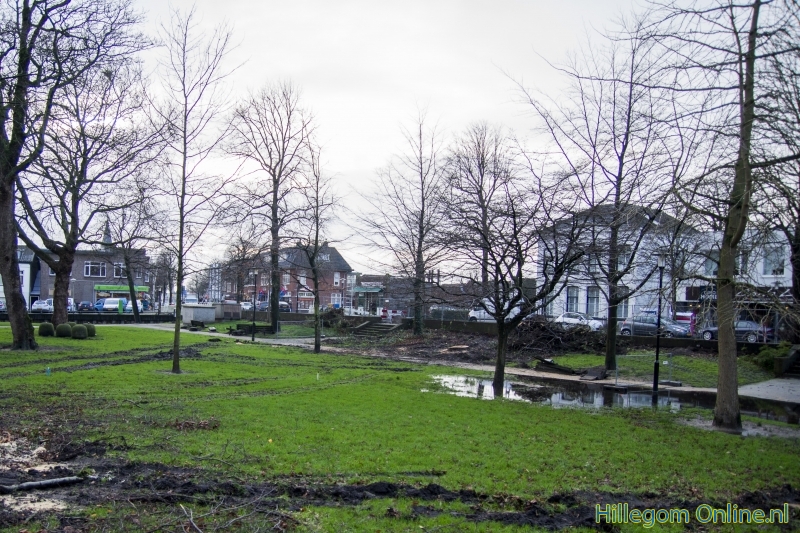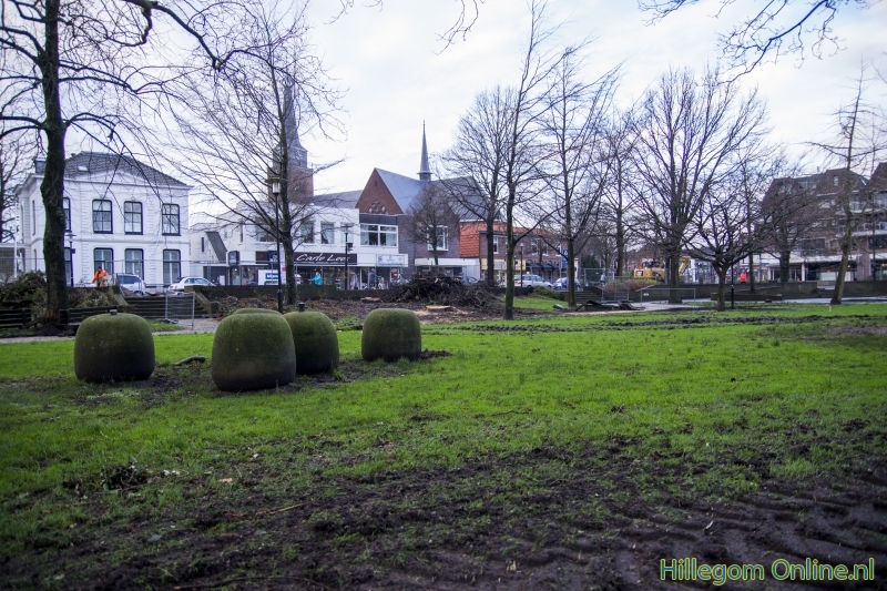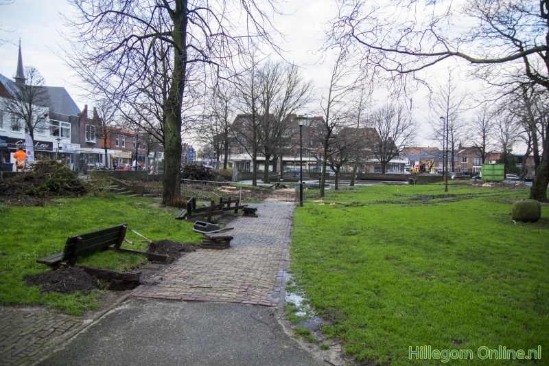 Hillegom- Afgelopen week is er gestart met de renovatie van de Hoftuin. De bomen die weg moesten, zijn weggehaald. Ook is het gebied al afgezet met hekken en kan het slopen beginnen. En beelden en naambordjes zijn veilig opgeborgen.
