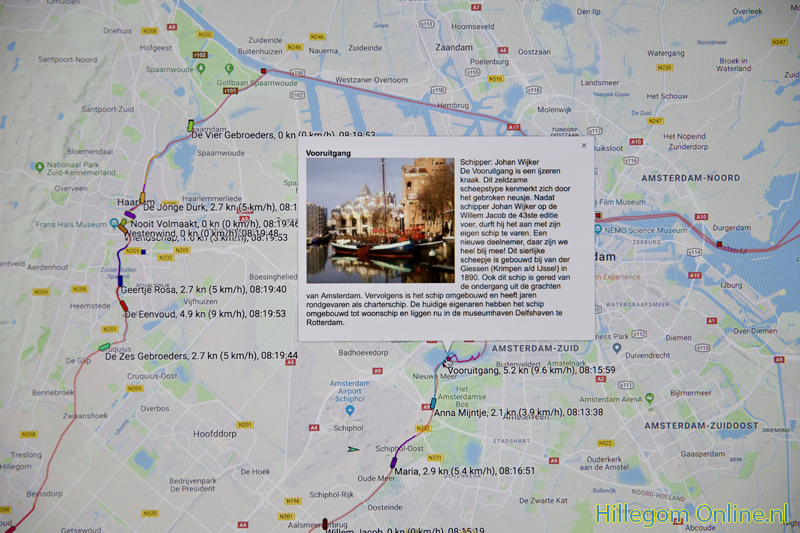 De schepen kunnen via een Tracksite gevolgd worden. Dit jaar doen er 9 schepen mee met de lichte klasse en 4 uit de zware klasse. De schippers kunnen verschillende routes kiezen. Bij tegenvallende weersomstandigheden moeten de boten getrokken worden. Willem Jacob moest 20 km jagen (het voorttrekken van het schip) tegen de wind in.