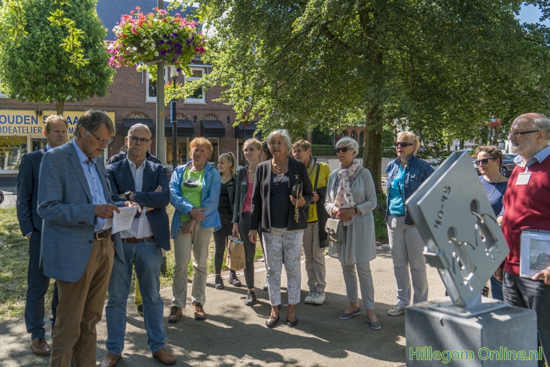 Na de overhandiging stonden de Vrienden van Oud Hillegom klaar om een rondleiding door het centrum van Hillegom te geven. Zo gingen de geïnteresseerden langs bij de Maartenskerk, de pomp en het gemeentehuis.
