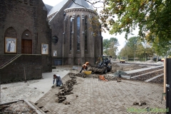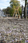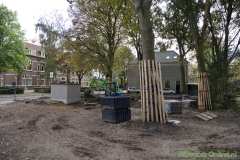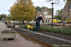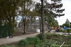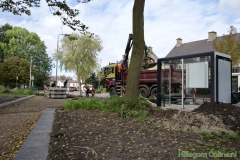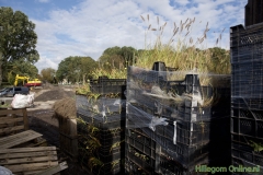 Er wordt nu ook begonnen met het planten van de beplanting en vandaag werd ook het bushokje aan de Irenelaan neergezet.