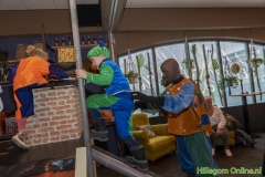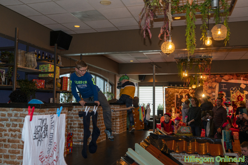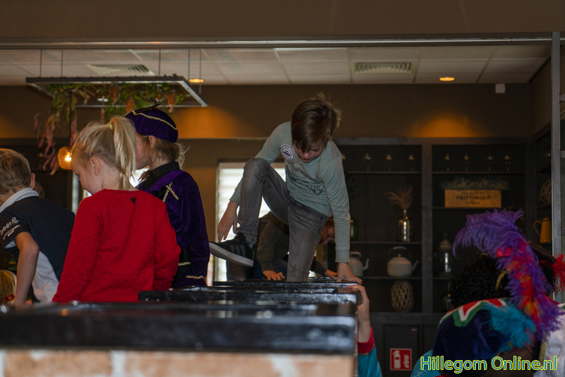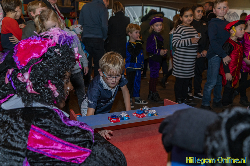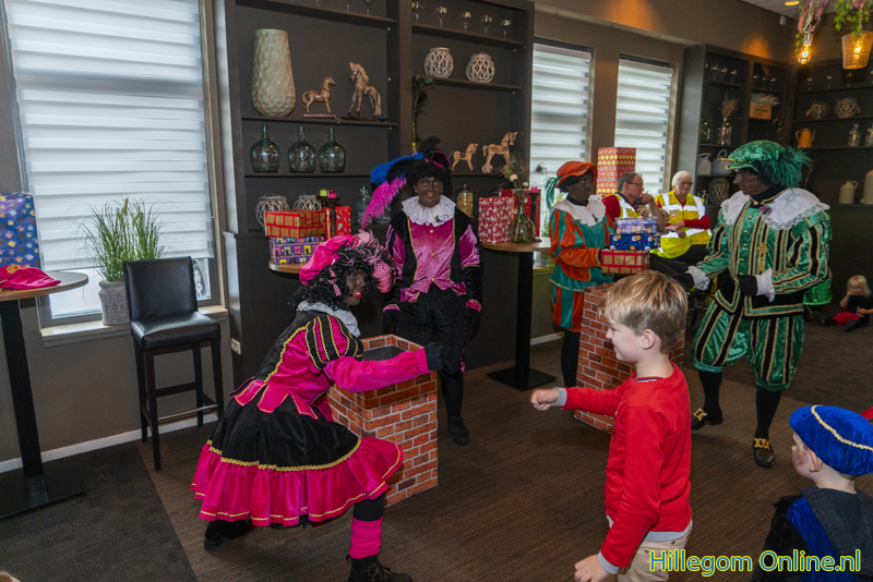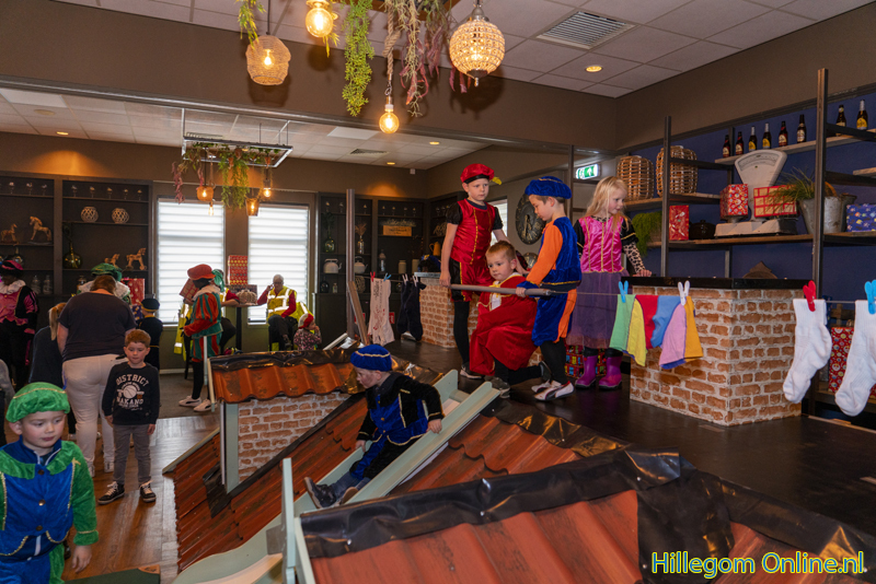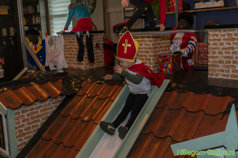 Hillegom – Na de intocht konden de kinderen langs bij Sinterklaas in Hotel Villa Flora. Ze konden hier hun tekening inleveren en op de foto met Sinterklaas. Ook waren er vele pietenspellen voor de kinderen. Zo konden ze over een dak lopen en door de schoorstenen, pakjes sjoelen en pakjes in schoorstenen gooien.