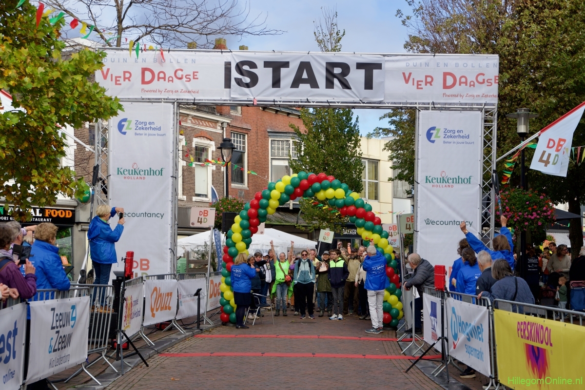 De vierde editie van de Vierdaagse van de Duin- en Bollenstreek was weer een feestelijk gebeuren met start en finish bij de Oude Pomp.