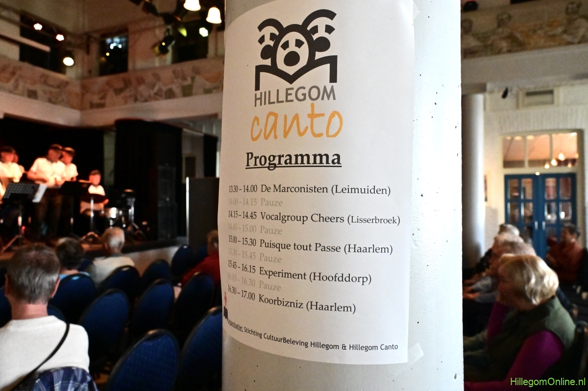 Dit afwisselende aanbod werd zeer gewaardeerd gezien het feit dat er veel publiek op af was gekomen. De koren die op het programma stonden waren De Marconisten uit Leimuiden, Vocalgroup Cheers uit Lisserbroek, Puisque tout Passe uit Haarlem, Experiment uit Hoofddorp en Koorbizniz uit Haarlem.