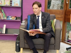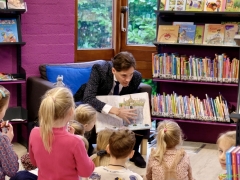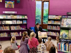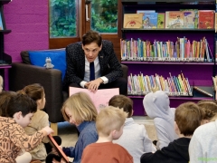 Hillegom – Op woensdagmorgen 22 januari werd er door Burgemeester Roberto ter Hark voorgelezen in de Bibliotheek van Hillegom voor twee groepen van de basisschool. Dit was in het kader van de nationale voorleesdagen. De burgemeester las het boek van ‘Rinus het nijlpaard’ voor, waarbij er veel interactie was met de kleuters. Leerlingen van het Fioretti, 4e jaar Mavo Zorg en Welzijn hadden een uitgebreid ontbijt verzorgd, wat iedereen inclusief begeleiders en de burgemeester zich prima lieten smaken.
