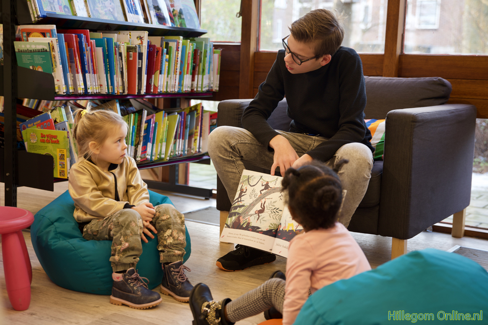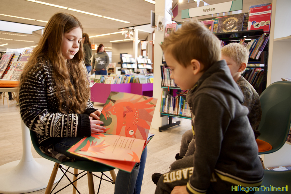 Na het voorlezen van het verhaal waren de brugklassers van het Fioretti College aan de beurt om ook voor te lezen. Door de kinderen werd er een leuke hoek uitgezocht om er met kleine groepjes ademloos te luisteren.