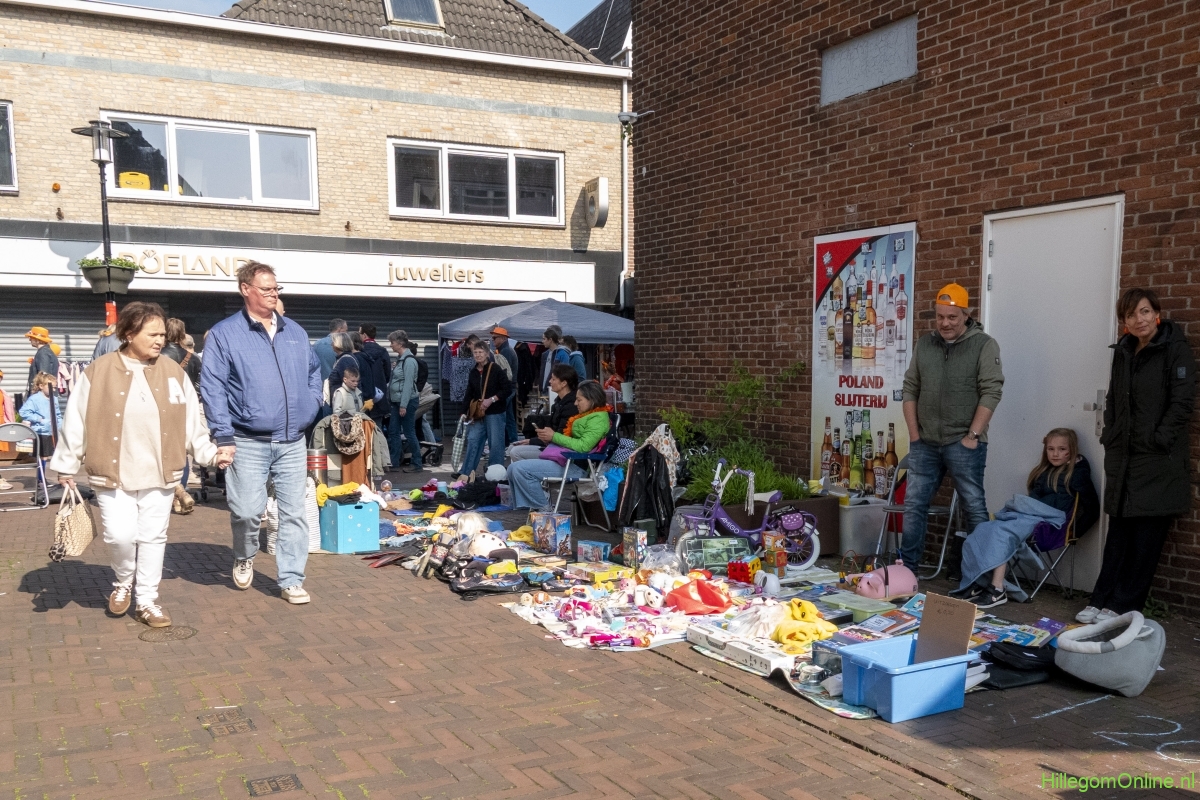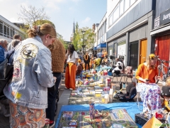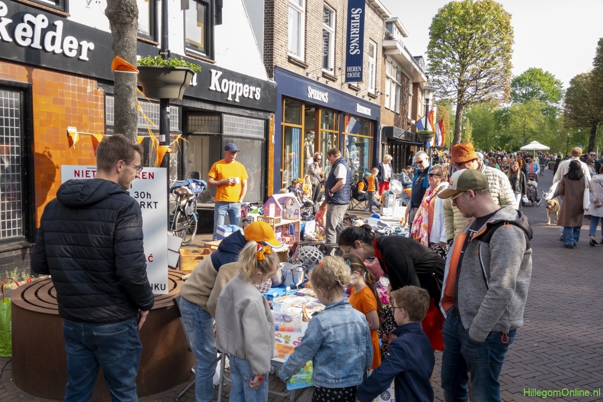 Wat is Koningsdag zonder de gezelligheid van de vrijmarkt? Ook dit jaar was het weer mogelijk om op de Hoofdstraat tweedehands spullen te verkopen of juist op zoek te gaan naar mooie vondsten voor een leuke prijs. Kinderen tot 15 jaar mochten hun kraampjes opzetten, uiteraard met hulp van een volwassene. De vrijmarkt, die zich uitstrekte van Café de Kleine Beurs tot aan Bollenstreek Lunch & more (Café Murphy’s Law), was een levendig en kleurrijk deel van de Koningsdagviering, waar jong en oud met plezier de leukste items vonden en verkochten.